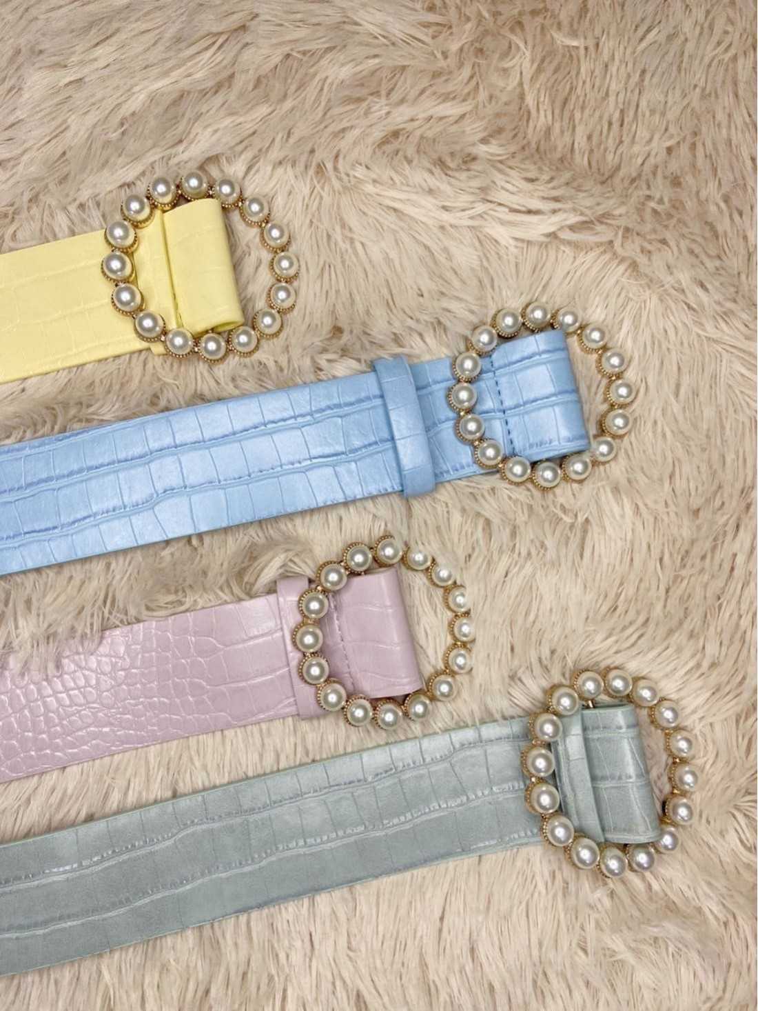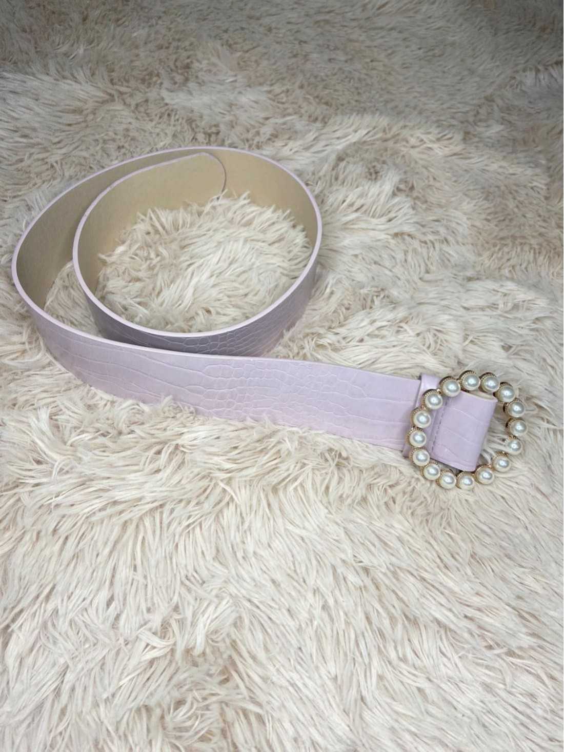 Cinturón de piel de serpiente con hebilla en perlas blancas