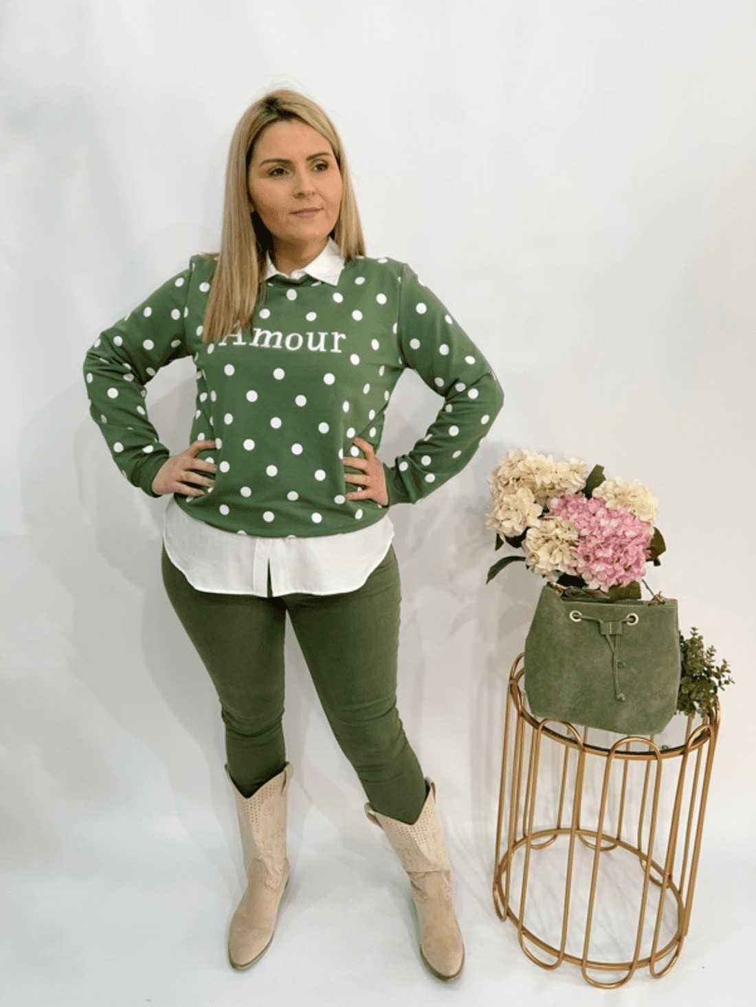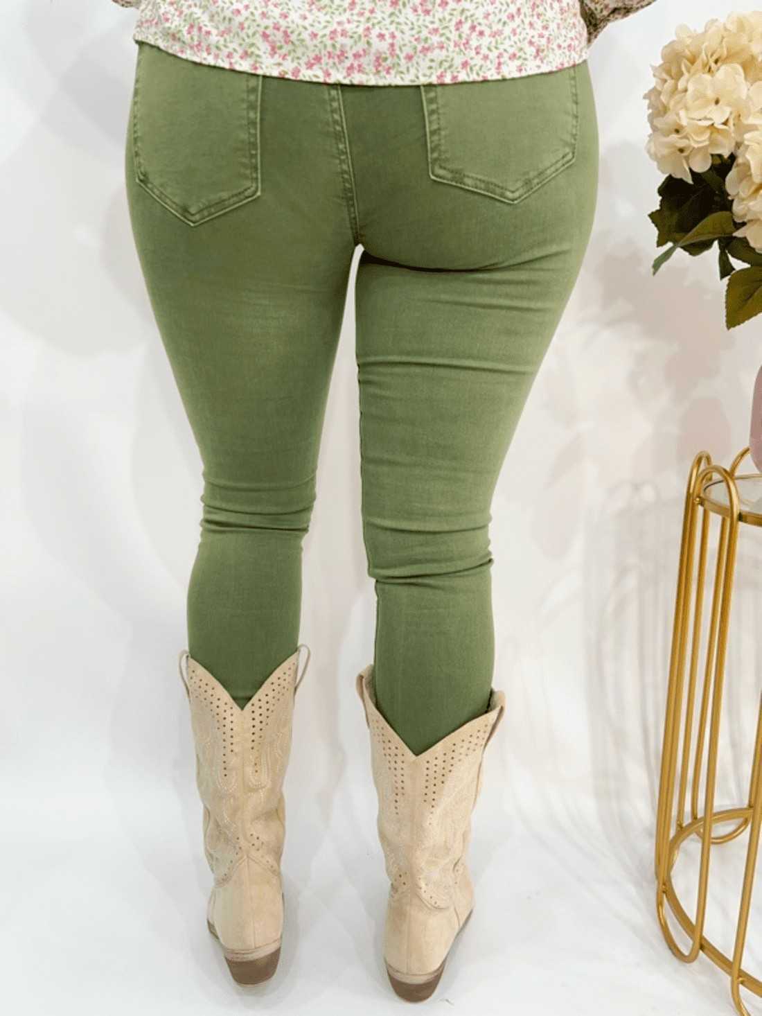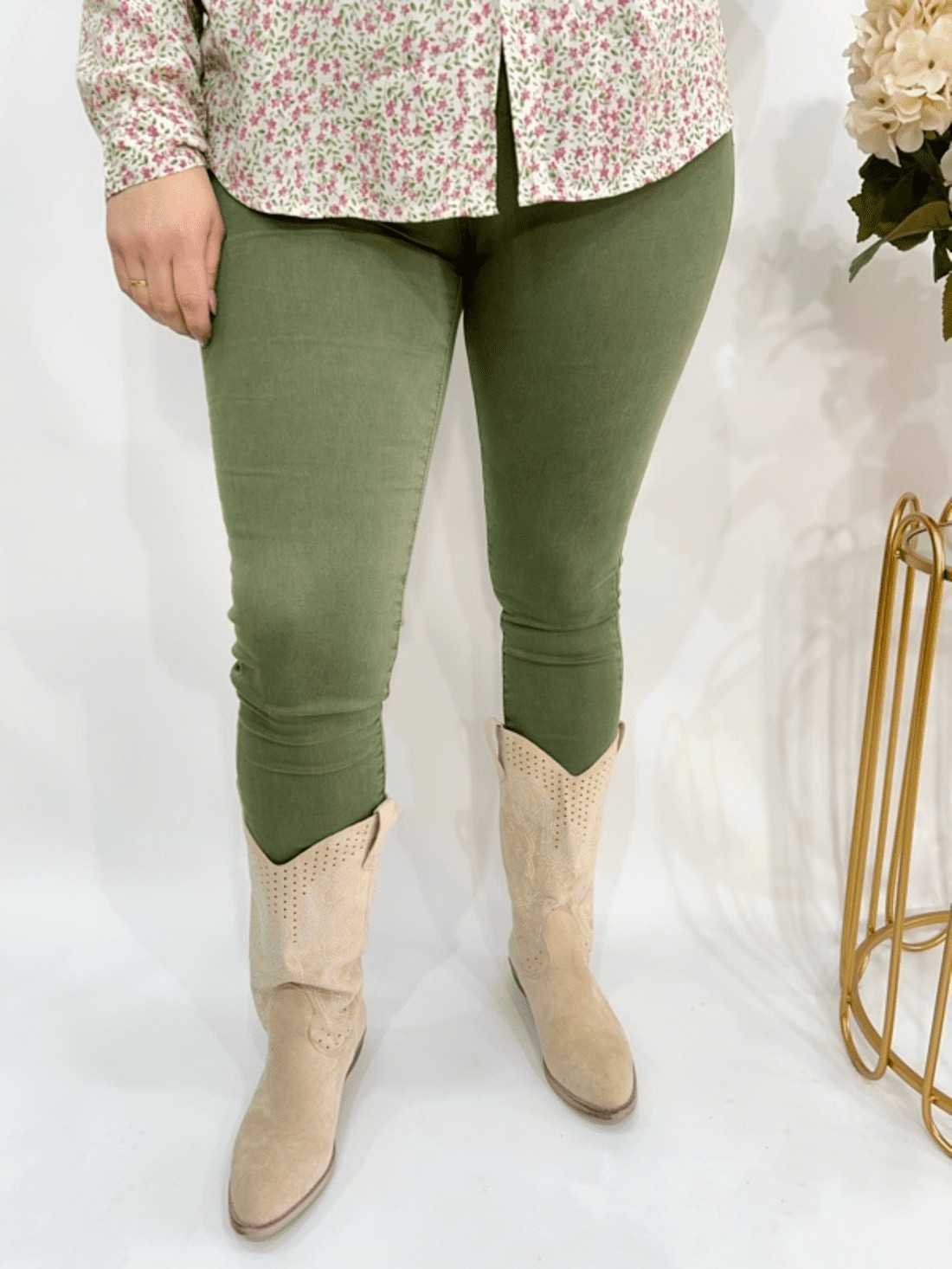 Pantalón largo de pitillo y turo medio alto con cuatro bolsillos, dos en la parte delantera y dos en la parte de atrás sin rotos ni desgastes.