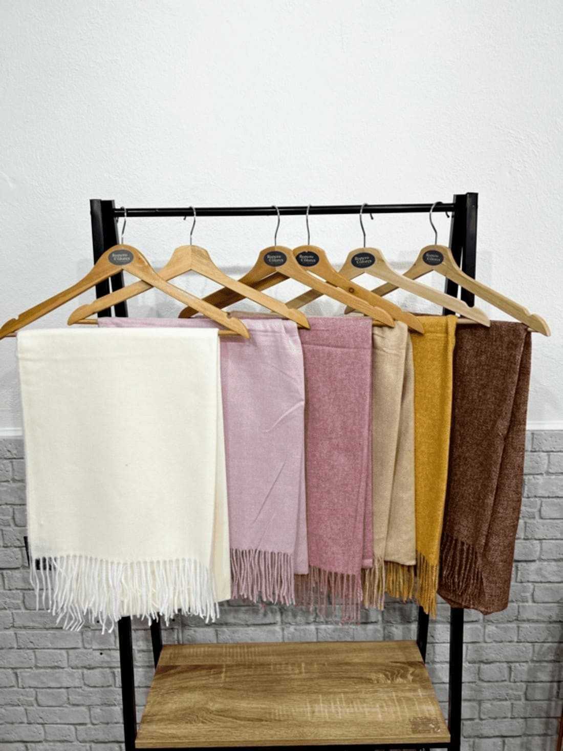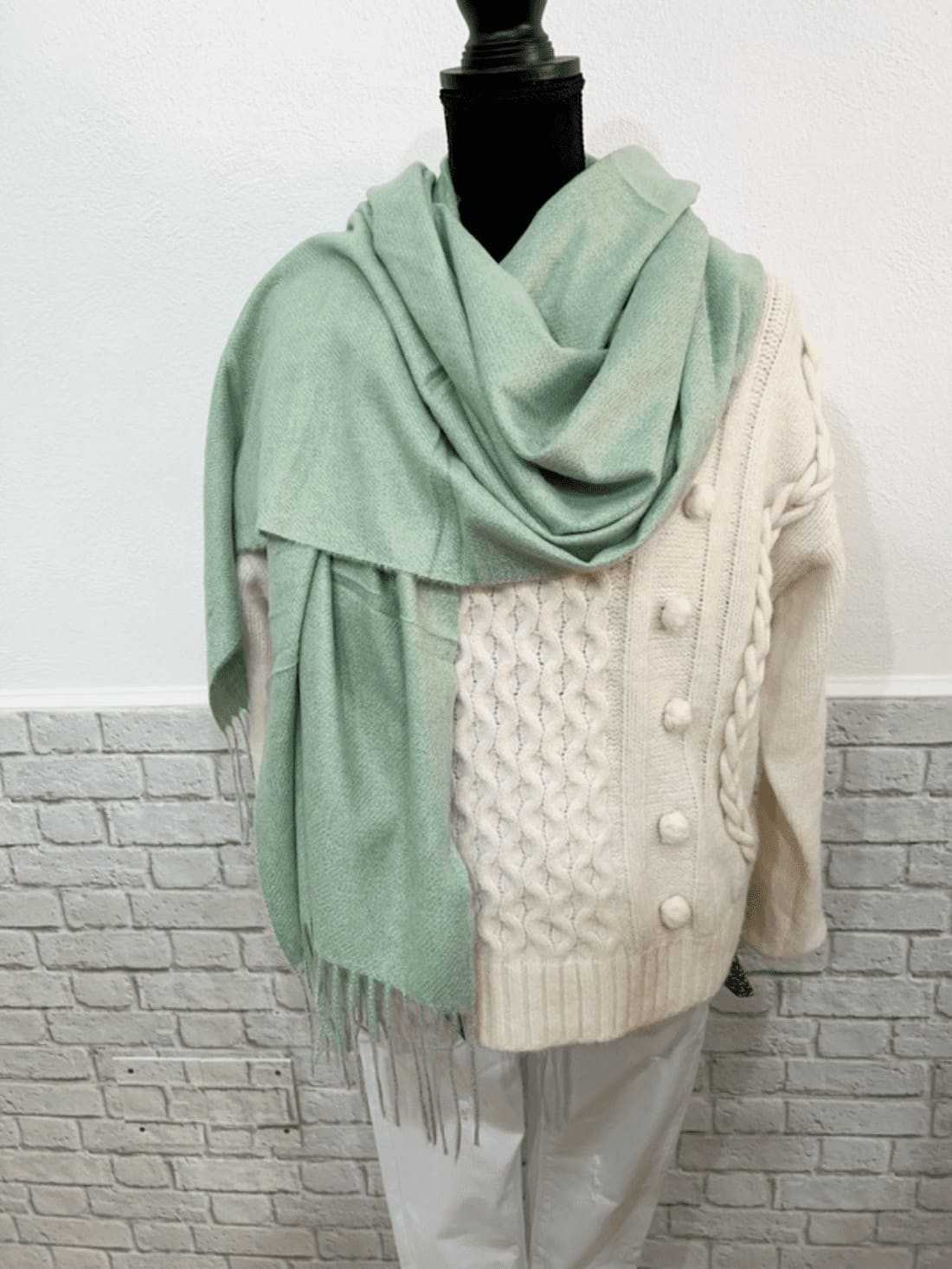 Pañuelo liso grande alargado con cordoncillos en el final de cada lado del mismo color y género