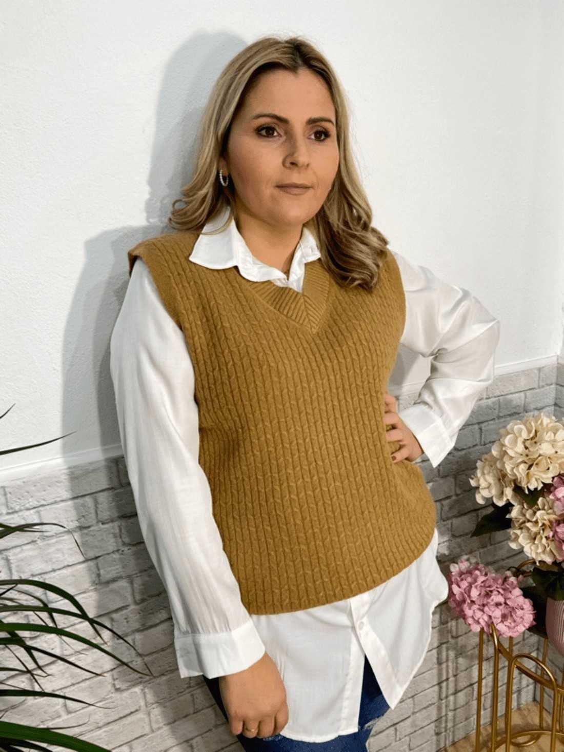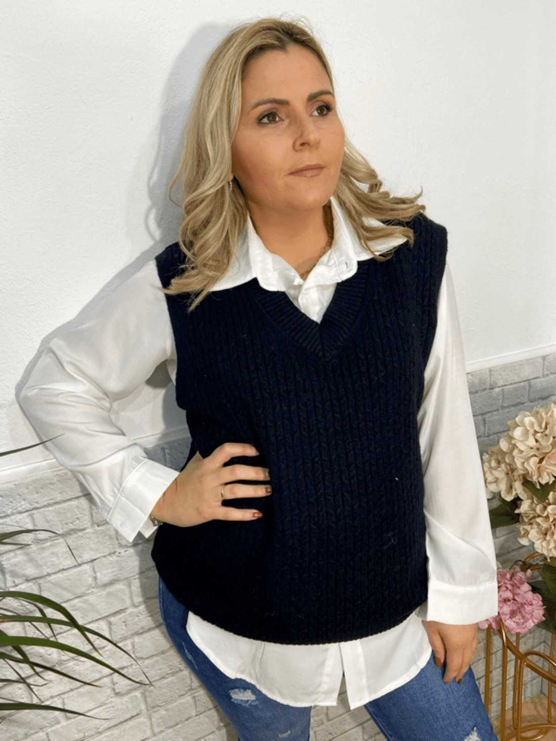 Chaleco de punto con cuello pico