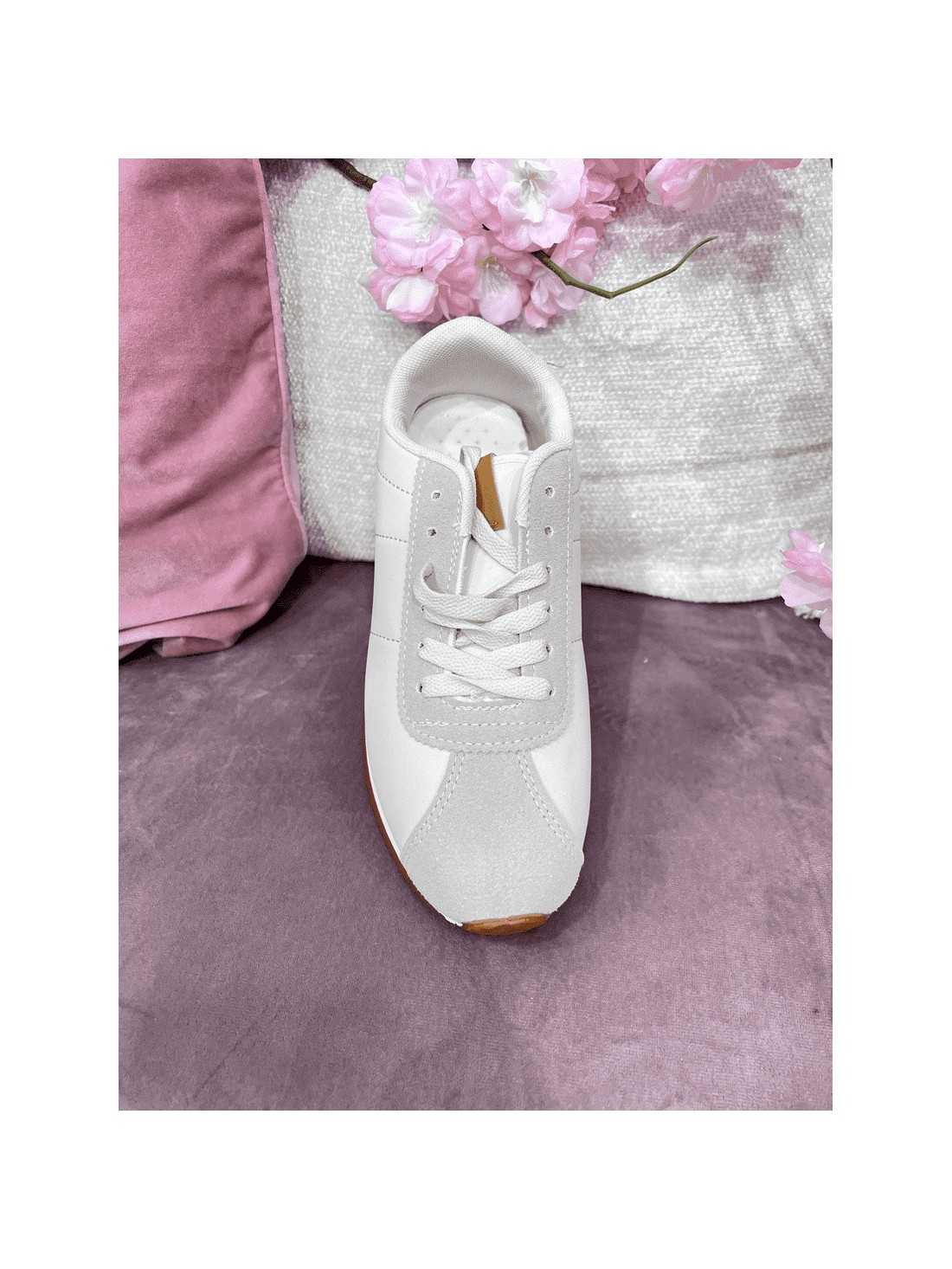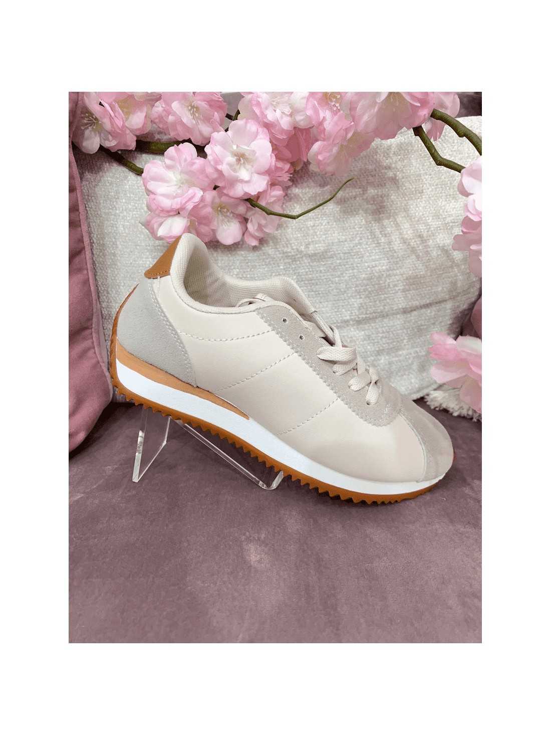 Zapatilla deportiva casual de varios géneros, polipiel, ante en tonos beige y grises. Es una zapatilla muy bonita y cómoda
